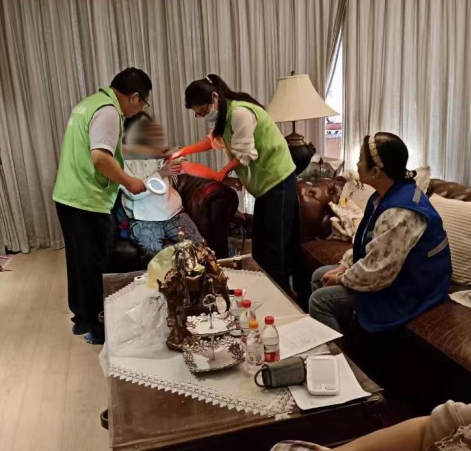 隨后,工作人員協(xié)同馬群街道陶醫(yī)生來到了社區(qū)另一戶居民王女士家中。王女士因為身體原因無法到醫(yī)院參加體檢,社區(qū)網(wǎng)格員在了解到情況后,與馬群街道衛(wèi)生服務(wù)中心聯(lián)系,預(yù)約了家庭醫(yī)生服務(wù),為王女士進行上門體檢。醫(yī)護們?yōu)橥跖考捌浼抑懈啐g老人進行了認真細致的常規(guī)檢查,并結(jié)合實際情況給出日常居家注意事項,為王女士的生活提供了極大便利。