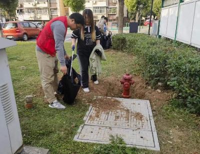 宣傳活動結束后,大學生們在小區(qū)內開展清潔家園志愿服務。大學生們拿著掃把、垃圾鉗等工具清理樓道雜物、生活垃圾、煙頭等。經(jīng)過大家的共同努力,東山社區(qū)的環(huán)境得到了較大改善。
