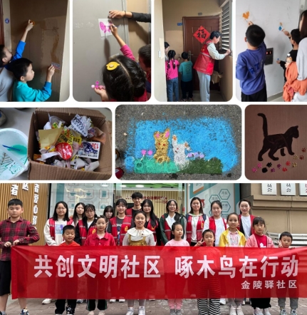 秋風(fēng)送爽桂花香,盛世豐歌四海揚(yáng)。為了美化社區(qū)環(huán)境,提高社區(qū)人民生活幸福感。近日,金陵驛社區(qū)“啄木鳥”未成年志愿服務(wù)隊(duì)聯(lián)合南京理工大學(xué)公共事務(wù)學(xué)院開展“啄木鳥美容師:大手拉小手,共繪五彩社區(qū)”的主題彩繪活動(dòng)。