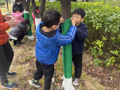 護(hù)一顆小樹,暖一個(gè)冬天。通過此次活動(dòng),孩子們了解到樹木御寒保暖的方法,用自己的方式關(guān)愛身邊的樹木。鍛煉了動(dòng)手實(shí)踐能力,激發(fā)了孩子們的主人翁意識。