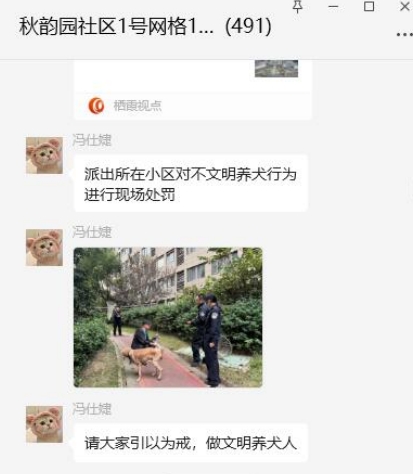 社區(qū)依托網(wǎng)格化管理,落實“網(wǎng)格+N”,組織網(wǎng)格員、物業(yè)工作人員、“紅韻”黨員志愿服務隊志愿者在每日早上和晚間遛狗高峰時段開展義務巡邏,重點提醒犬主牽繩、及時清理糞便等,勸阻不文明行為。