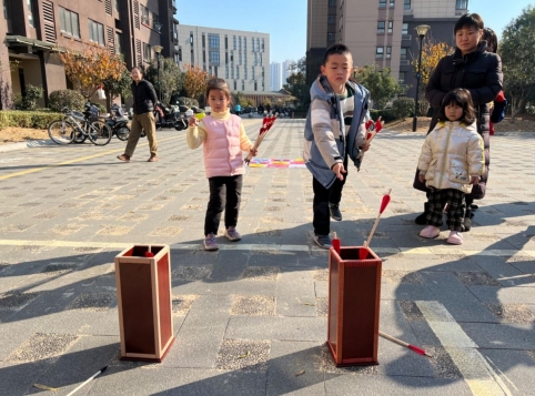 活動(dòng)現(xiàn)場(chǎng),參與者們熱情高漲,孩子們更是興奮不已?;顒?dòng)共分為四個(gè)環(huán)節(jié):投壺、套圈、三子棋、珠行萬里。