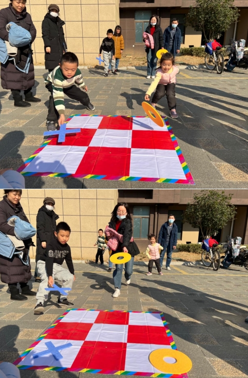 到了第三個(gè)環(huán)節(jié)的三子棋游戲,把整場(chǎng)活動(dòng)推向了高潮,在游戲過程中,不僅要將自己家庭的棋子連成一條線,還要阻止對(duì)方家庭的棋子連成一條線,此環(huán)節(jié)游戲不僅考查家長(zhǎng)、孩子們的觀察力、策略感以及邏輯思維能力,還有效鍛煉了家長(zhǎng)、孩子們的身體素質(zhì)和勇氣,大大提高了每組家庭成員的應(yīng)變能力和相互協(xié)作的能力。