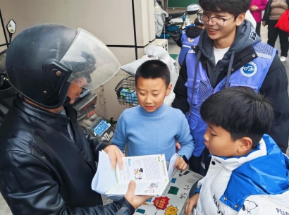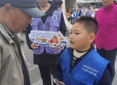 12月9日下午,“防詐少年團(tuán)”在社工、大學(xué)生志愿者等帶領(lǐng)下,走上街頭,向過往市民、商家宣傳防詐騙知識。這是溧水區(qū)永陽街道錦繡社區(qū)開設(shè)的“課外拾光”周末公益課堂的一個縮影。