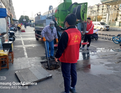 社區(qū)深知處理污水管道漫溢事件的緊急性,簡單勘查確認后當即聯(lián)系物業(yè)安排專業(yè)人員及設備前往現(xiàn)場處置,在疏通污水管道同時,社區(qū)安排“掌云+積分制”志愿者現(xiàn)場維護秩序,引導居民繞行,防止污水噴濺。經(jīng)過一上午處置,堵塞的管道徹底暢通,隨后社區(qū)組織人員對污水管道口周邊進行了沖洗,確保現(xiàn)場環(huán)境干凈整潔,居民生活及通行恢復正常。