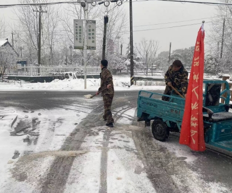 楊柳湖社區(qū):退役軍人掃雪撒鹽 保障社