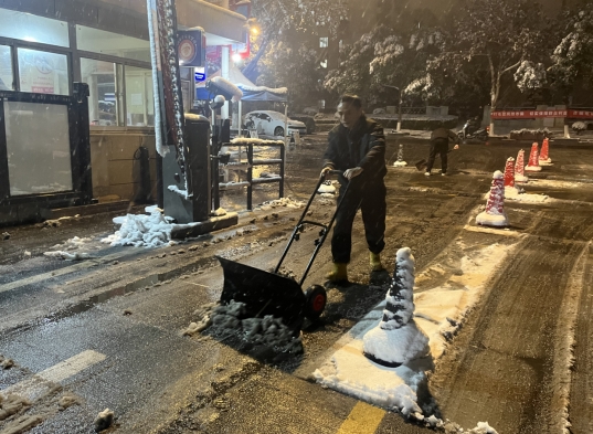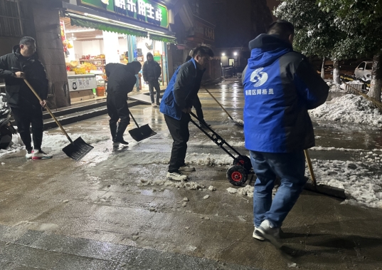 12月18日,我市迎來入冬以來最大一場降雪,為保障社區(qū)居民出行安全,百水芊城社區(qū)“以雪為令,迎雪而上”,迅速投入到除雪防滑、保障道路安全暢通等工作中。