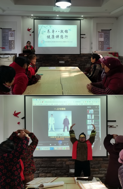 為進(jìn)一步倡導(dǎo)樹立新時代文明健康生活方式,引導(dǎo)村民科學(xué)健身,12月26日,南京市江寧區(qū)淳化街道茶崗村新時代文明實踐站聯(lián)合紅葉社工,在大花區(qū)議事園開展“養(yǎng)身八段錦 健康伴您行”健身普及教學(xué)活動?;顒又荚诤霌P中華傳統(tǒng)養(yǎng)生文化,倡導(dǎo)文明健康的生活方式,得到了村民的積極響應(yīng)和參與。