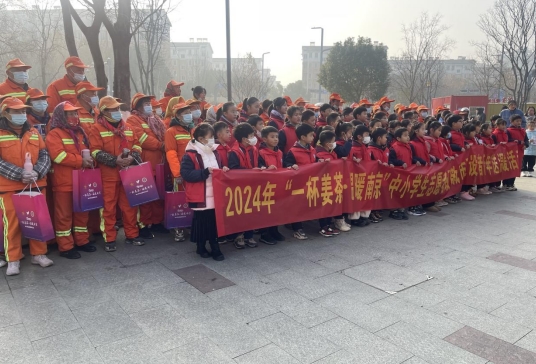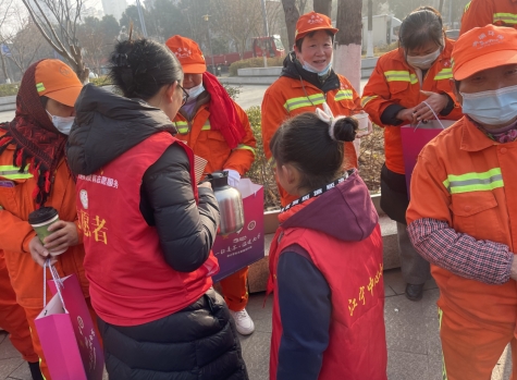 江寧街道“一杯姜茶·溫暖南京”中小學(xué)生志愿者關(guān)愛環(huán)衛(wèi)工人新年送溫暖活動(dòng)