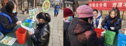活動中,志愿者通過知識問答、分類轉(zhuǎn)盤、分類投放的形式,隨機提問垃圾分類小常識,使居民群眾加深生活垃圾分類印象,做到準確辨別廚余垃圾、有害垃圾、其他垃圾、可回收物等四類生活垃圾類別。