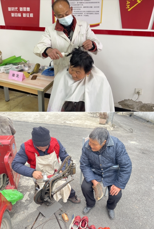 整合服務資源,服務供給多樣化。本次活動不僅邀請了南京工程學院門診部師生資源,為社區(qū)村民提供測血糖、測血壓、健康問診、寫福送春聯服務,同時還有本村的志愿者服務資源——修鞋、理發(fā)、磨刀,讓村民不出社區(qū),也能辦很多事,享受更多的服務。