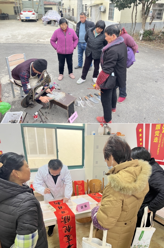 服務惠民生,關愛增福祉?;顒蝇F場,各類服務分區(qū)進行,吸引了大量村民前來參與。義診服務備受老年人的歡迎,老年人作為高血壓、高血糖的多發(fā)人群,對自己的健康狀況特別關注。新年來臨之際,送春聯、理發(fā)、磨刀等生活服務也很是受眾歡迎。“手寫的春聯帶有祝福”、“師傅幫我理個發(fā)”、“這刀磨得呱呱叫”、“現在服務真到位,共產黨真好”……這些看似簡單的服務,卻實實在在提高了村民們的生活便利性。