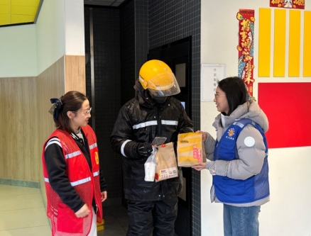 一大早,志愿者們就開始準備臘八粥,將十多種食材清洗干凈放入鍋中,經(jīng)過一段時間的燉煮,臘八粥的香氣彌漫在空氣中。黨員志愿者和職工志愿者提前將部分粥裝在盒里,準備發(fā)放給正在辛苦工作的外賣員、快遞員和環(huán)衛(wèi)工人。“小哥辛苦了,來喝碗熱乎乎的臘八粥吧!”隨著志愿者的招呼,先后為三十余名“寧小蜂”們送上臘八粥。