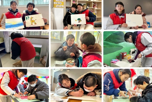 清晨,青年志愿者來到機(jī)構(gòu),為學(xué)員們帶來米、油、零食以及春節(jié)慰問物資,謙和地做自我介紹,與機(jī)構(gòu)學(xué)員近距離地接觸互動,并一同做剪紙、投壺游戲、指導(dǎo)畫畫等,體驗殘疾學(xué)員的日常生活,知曉殘疾人這一社會弱勢群體生活的不易與艱辛。午飯時間,他們主動提出給重度自閉癥學(xué)員喂飯,進(jìn)一步展現(xiàn)青年志愿者的友愛與奉獻(xiàn)精神。