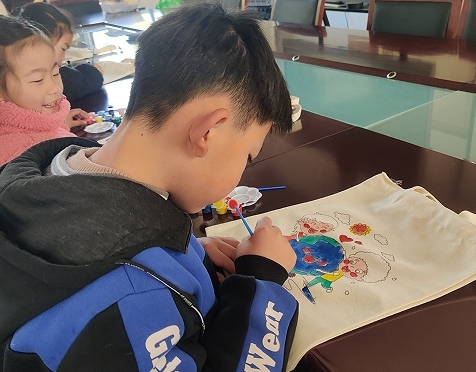 活動中,每一個孩子手中都拿著一支畫筆,發(fā)揮自己的創(chuàng)意和想象力,在帆布袋上進行涂鴉和繪畫。無論是臨摹還是自由發(fā)揮,他們都能充分表達(dá)自己的獨特風(fēng)格和個性。有的孩子畫出了可愛的動物,有的孩子描繪了美麗的自然景觀,而還有一些孩子則創(chuàng)作了抽象的藝術(shù)作品。