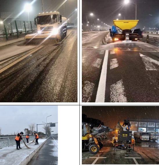 雨雪飄飄、寒風(fēng)瑟瑟,風(fēng)雪中濱江開(kāi)發(fā)區(qū)工作人員不畏嚴(yán)寒,不斷對(duì)轄區(qū)內(nèi)高架橋梁、江寧西站出入口、公交站臺(tái)、坡道、菜場(chǎng)周邊等車流人流較大區(qū)域播撒融雪劑;并按照“機(jī)械掃雪為主、人工掃雪為輔”原則,進(jìn)行除雪作業(yè),做到人力物力科學(xué)配置。伴著作業(yè)車輛雪中轟鳴,除雪工作得到了高質(zhì)高效推進(jìn),潔白的路面很快露出了本來(lái)顏色,路面上的車輛行駛狀態(tài)趨于正常。