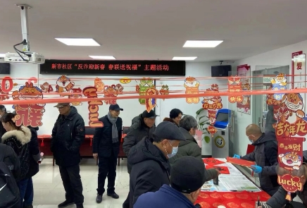 春聯(lián)反詐作用大,共護(hù)平安新春。2月4日,社區(qū)開展“反詐迎新春,祝福送萬家”主題活動(dòng),邀請通州區(qū)退休老干部書法家協(xié)會(huì)的書法家們?yōu)檩爡^(qū)居民寫春聯(lián)、福字,現(xiàn)場書法家們將反詐宣傳標(biāo)語寫在對聯(lián)上送給居民。