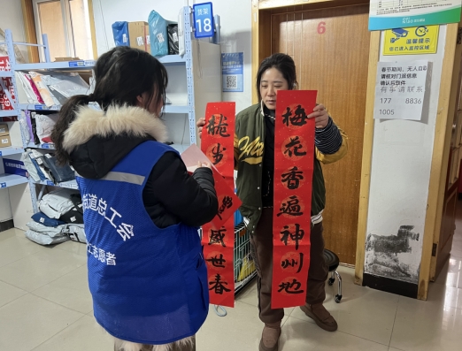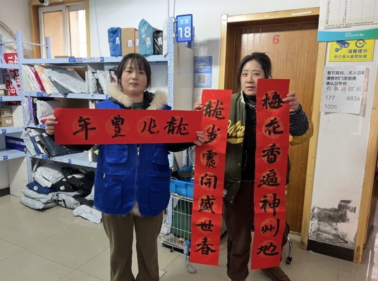 社區(qū)職工志愿者們深入到快遞驛站,為辛勤工作的員工們送上了寓意吉祥如意的春聯(lián)。這些精心挑選的對聯(lián),字里行間洋溢著溫馨與幸福,傳遞著濃濃的節(jié)日祝福,為即將到來的春節(jié)增添了無盡的喜慶氣氛,也為大家?guī)チ藵M滿的福氣與誠摯的祝愿。