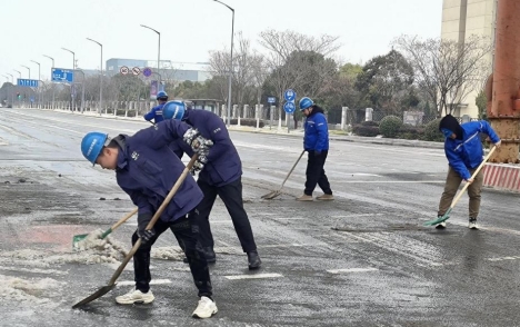 盡管氣溫低下,且雨雪在車輛的碾壓下在路面上形成厚厚的冰層,給清掃工作帶來極大的困難。但項(xiàng)目部全體員工仍信心十足,通過精心組織,分工合作,明確各自的負(fù)責(zé)區(qū)域后全身心的投入到除雪工作中。鐵鍬與道路的撞擊聲,掃帚與積雪的摩擦聲共同構(gòu)成了一曲清冰除雪的激昂樂章,給清掃積雪也注入了無限的動(dòng)力。經(jīng)過項(xiàng)目員工的不懈努力,項(xiàng)目施工區(qū)域周圍道路上的積雪積冰已清掃完成,極大的消除了道路上的安全隱患,用實(shí)際行動(dòng)為群眾清掃了一條便民路。同時(shí),為防止道路再次結(jié)冰,項(xiàng)目部也安排人員對(duì)已清掃道路進(jìn)行撒鹽防凍,切實(shí)保障道路安全,在嚴(yán)寒中守護(hù)市民出行安全。