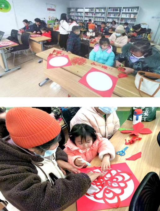 故事會(huì)前,老師先帶領(lǐng)孩子們一起做熱身活動(dòng)手指謠,充分調(diào)動(dòng)了孩子的積極性。之后志愿者老師繪聲繪色地講解了繪本《春福》,故事以除夕為舞臺(tái),講述掉落人間的精靈小福氣,在孤單無(wú)助的夜里走進(jìn)了狐貍面館,因?yàn)樾『偟纳屏己头窒?,小福氣發(fā)現(xiàn)了不一樣的自己,通過(guò)自我成長(zhǎng)創(chuàng)造了不可思議的幸福除夕。志愿者老師在閱讀過(guò)程中積極引導(dǎo)家長(zhǎng)與孩子互動(dòng),共同探討故事情節(jié),并通過(guò)角色扮演,讓孩子深入理解人物性格,感受到福氣傳遞的幸福和美好,明白了溫柔和善良有著不可思議的力量。最后,老師帶領(lǐng)著孩子和家長(zhǎng)一起剪窗花,進(jìn)一步加深了孩子們對(duì)中國(guó)傳統(tǒng)文化的了解。