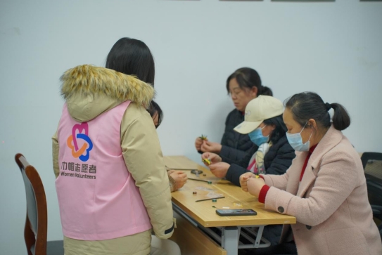 隨后,活動現(xiàn)場進(jìn)入了實(shí)踐環(huán)節(jié)。在老師的指導(dǎo)下,參與者們親自動手,體驗(yàn)了纏花發(fā)簪的制作過程。他們從選材、設(shè)計(jì)到纏繞、裝飾,每一步都充滿了挑戰(zhàn)和樂趣。社區(qū)工作人員和志愿者也隨時(shí)提供著幫助,經(jīng)過一個(gè)多小時(shí)的精心制作,一件件精美的纏花發(fā)簪逐漸呈現(xiàn)在眼前。參與者們在欣賞自己的作品的同時(shí),也感受到了傳統(tǒng)技藝的獨(dú)特魅力。