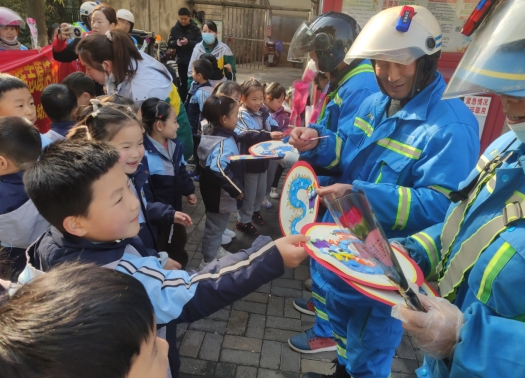 緊接著,在社區(qū)工作人員和幼兒園老師的帶領(lǐng)下,小朋友們?yōu)楦浇沫h(huán)衛(wèi)工人們送上了節(jié)日祝福,并送出手中的鮮花和孩子們自己制作的手工禮品。環(huán)衛(wèi)工友們都露出了欣慰的笑容,看到歡快活潑的孩子們,他們仿佛也年輕了好幾歲,相信來自小朋友的溫暖,一定能解除他們今日工作的疲憊。