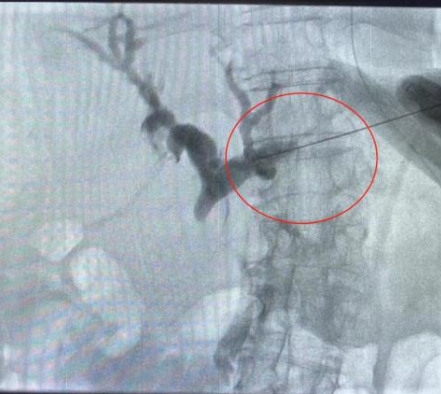 呼吸道癥狀剛解除,患者的膽紅素上升到了185umol/L。短短6天,翻了近6倍。已經(jīng)造成肝功能不全,很快會(huì)誘發(fā)肝衰竭,危及生命!危急時(shí)刻,患者的子女焦急萬分,他們懇求醫(yī)生竭盡全力救治,提高母親日后的生活質(zhì)量。經(jīng)過介入科、重癥醫(yī)學(xué)科、普外科的討論,決定請(qǐng)介入科副主任王劍團(tuán)隊(duì)行左側(cè)經(jīng)皮肝內(nèi)膽管穿刺引流術(shù),以緩解癥狀。