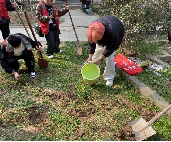 活動(dòng)中,志愿者們分工協(xié)作,有的挖坑,有的扶苗,有的澆水,有的培土,忙得不亦樂(lè)乎。隨著一株株承載著美好希望的樹(shù)苗、花朵種下,大家用實(shí)際行動(dòng)呼吁愛(ài)綠護(hù)綠植綠。