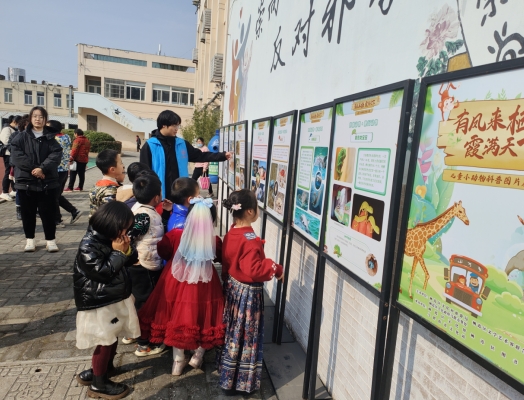 本次活動以《有鳳來棲,霞滿天下》展板形式在社區(qū)廣場進行展出,以爬行、哺乳、節(jié)肢、魚類、海洋類、鳥類等形式進行分類,展示地球的生機勃勃,動物是自然界的主角之一,從浩瀚的海洋到廣闊的天空,從蒼翠的草原到荒漠的沙漠,從烈日炎炎的非洲到冰雪覆蓋的南極……動物和人類一樣,譜寫著美妙的生命之歌。展示期間每天吸引了較多孩子們前來觀賞,激發(fā)轄區(qū)孩子們要懂得珍惜它們的存在,時刻銘記人與動物和諧共存,地球才會有更美好的未來。