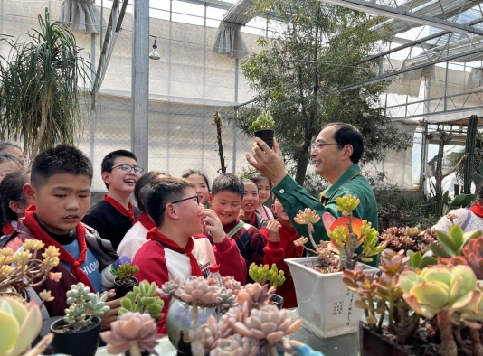 在立乾花卉陳茂松老師的悉心指導下,南灣營小學的孩子們不僅學習到了多肉植物的基本知識和種植技巧,還親手體驗了盆栽制作的過程。陳老師耐心地為孩子們講解每種多肉植物的名稱、特性以及養(yǎng)護方法,引發(fā)了孩子們濃厚的興趣。在隨后的制作環(huán)節(jié),孩子們在工作人員的帶領下,挑選了自己喜歡的多肉植物,精心搭配,制作出了一個個充滿創(chuàng)意和個性的小盆栽。