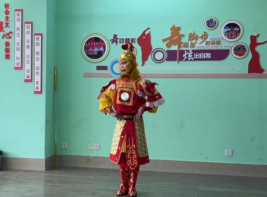 金全福老師身著華麗戲服,手執(zhí)金箍棒,生動再現(xiàn)了美猴王孫悟空的智勇形象。他的精彩演出不僅讓老人們欣賞到了中華傳統(tǒng)戲曲的魅力,更在他們心中種下了樂觀向上的精神力量。他借助國學藝術的力量,將歡笑和溫暖送進每一位老人的心田,讓他們在平凡的日子里感受到生活的多彩與希望。