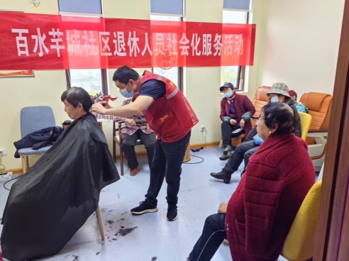 百水芊城社區(qū)開展“關(guān)愛退休職工,愛心義剪”活動(dòng)
