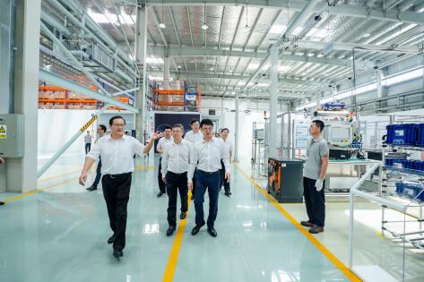 中國汽車工業(yè)協(xié)會(huì)原常務(wù)副會(huì)長、中國汽車動(dòng)力電池產(chǎn)業(yè)創(chuàng)新聯(lián)盟理事長董揚(yáng)(前排右二),中國汽車工業(yè)協(xié)會(huì)專務(wù)副秘書長、汽車動(dòng)力電池產(chǎn)業(yè)創(chuàng)新聯(lián)盟秘書長許艷華(前排右三)等領(lǐng)導(dǎo)參觀重塑科技常熟產(chǎn)業(yè)化基地產(chǎn)線