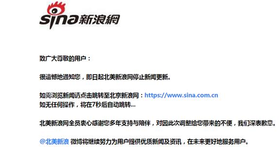 很遺憾地通知您,即日起北美新浪網(wǎng)停止新聞更新。