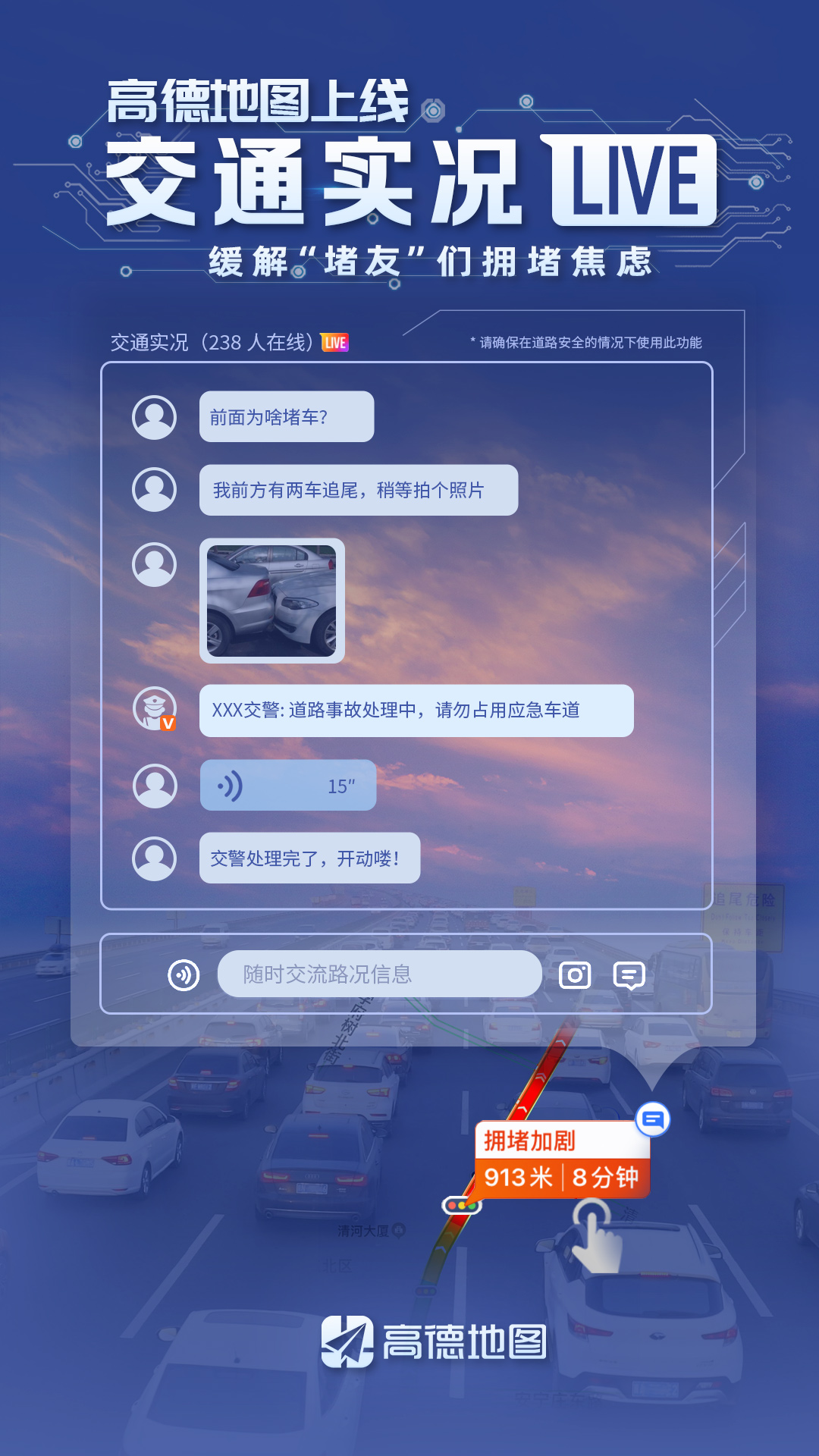 此次高德地圖通過與各地交警部門建立合作,并根據(jù)交通大數(shù)據(jù)對擁堵路段的精準(zhǔn)研判,推出“交通實況”服務(wù),就是基于嚴(yán)重擁堵路段創(chuàng)建的信息發(fā)布和分享平臺。通過這個平臺,各地交管部門可及時發(fā)布擁堵事件的權(quán)威信息,如擁堵原因、派警情況、預(yù)計疏通用時及現(xiàn)場圖片等。當(dāng)用戶進入嚴(yán)重擁堵路段時,通過點擊提醒氣泡即可進入該界面,實時了解擁堵信息。在車輛因堵車無法行進時,“堵友”們還可以互通有無,通過文字、語音、圖片等多種方式,為后方司機分享第一手信息。而當(dāng)擁堵疏散時,“交通實況”功能也將自動關(guān)閉。