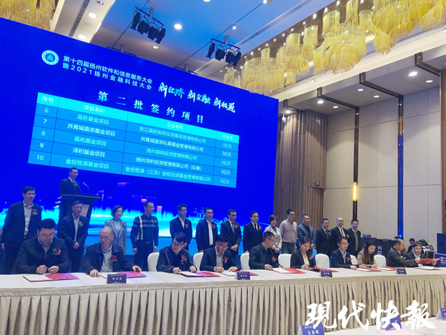 (通訊員 廣宣 記者 韓秋 顧瀟)4月21日,江蘇省生產(chǎn)力促進(jìn)中心-揚州廣陵區(qū)科技服務(wù)中心、揚州市基金大廈在揚州廣陵區(qū)揭牌。現(xiàn)代快報記者獲悉,當(dāng)天,廣陵區(qū)舉辦第十四屆揚州軟件和信息服務(wù)大會暨2021揚州金融科技大會,會上還集中簽約15個民資項目,計劃總投資68.6億元。