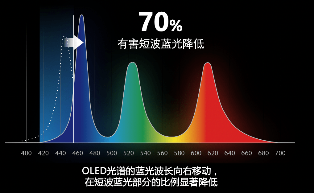 華碩無畏兩大主力產(chǎn)品采用的OLED 屏幕是新一代三星E4發(fā)光材質(zhì)。在OLED屏幕原有的優(yōu)勢基礎(chǔ)上通過優(yōu)化發(fā)光材料的OLED屏幕的藍光波峰相比傳統(tǒng)LCD屏幕的波長更長,減少了70%的有害短波藍光,做到硬件級防藍光,通過多家權(quán)威機構(gòu)的護眼認證。相比傳統(tǒng)的軟件防藍光,不會讓畫面偏黃,護眼的同時色彩依然準確生動。