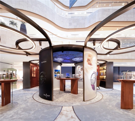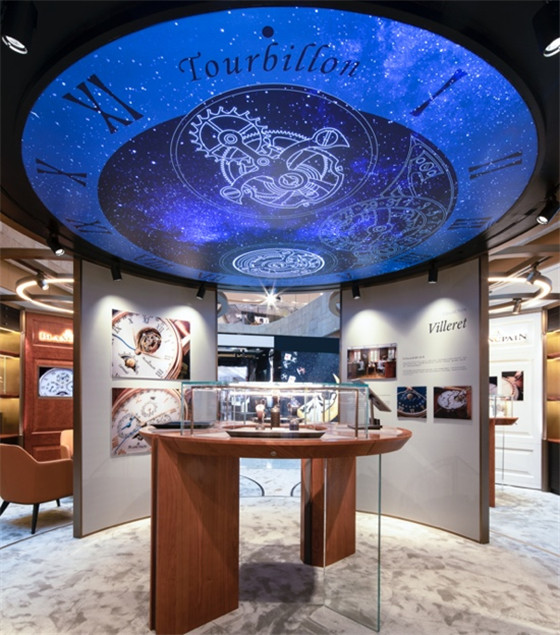此次,得名于品牌誕生地Villeret小鎮(zhèn)的寶珀經(jīng)典 V系列腕表將品牌全新展臺(tái)形象帶到南京,攜全系列時(shí)計(jì)作品在南京地標(biāo)性高端購(gòu)物中心德基廣場(chǎng)首秀。流線型展臺(tái)設(shè)計(jì)根據(jù)品牌全新店面設(shè)計(jì)理念開發(fā),于南京首次登場(chǎng)。深色橡木背板搭配香檳金金屬拉絲邊框,細(xì)節(jié)中將現(xiàn)代裝飾風(fēng)格與品牌經(jīng)典風(fēng)格元素巧妙融合。步入展廳柔軟舒適的淺色系地毯與棕色珍貴櫻桃木質(zhì)結(jié)構(gòu)六格窗設(shè)計(jì)構(gòu)成深淺呼應(yīng)、富有層次感的空間,打造舒適、奢華的賞表體驗(yàn)。展臺(tái)同時(shí)融合現(xiàn)代多媒體大屏展示系統(tǒng),將傳統(tǒng)典雅與現(xiàn)代摩登結(jié)合,豐富多樣的經(jīng)典時(shí)計(jì)目不暇接,來賓得以充分領(lǐng)略高級(jí)時(shí)計(jì)的風(fēng)采。