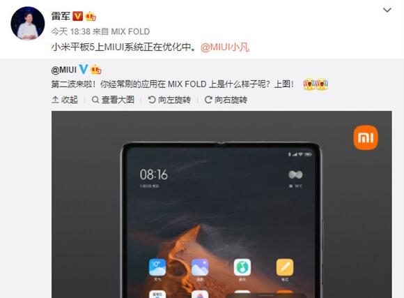 目前MIUI已為MIX FOLD推送更新,體驗有了大幅提升,小米平板上的MIUI系統也在持續(xù)優(yōu)化中。