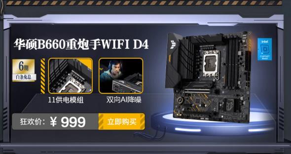 此外,若沒有無線需求,可選擇不帶WiFi 6無線網(wǎng)卡的華碩B660重炮手D4主板,價(jià)格更親民。開門紅秒殺價(jià)不高于949元,同樣12期免息。購買鏈接:https://item.jd.com/100031223666.html