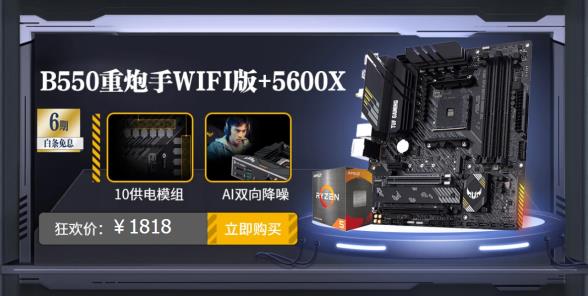 華碩B550重炮手WIFI二代搭5600X板U套裝:狂歡價(jià)1818元