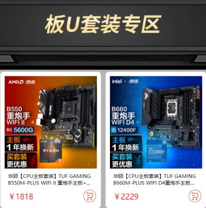 除了爆款主板單品外,華碩還為廣大玩家準(zhǔn)備了三款極具質(zhì)價(jià)比的重炮手系列板U套裝,分別是華碩B660重炮手WIFI D4主板搭i5-12400F處理器套裝,618開門紅驚爆價(jià)2229元(購買鏈接:https://item.jd.com/100031647696.html);華碩B550重炮手WIFI二代主板搭銳龍5 5600G處理器套裝,618開門紅驚爆價(jià)1818元(購買鏈接:https://item.jd.com/100016207253.html)。