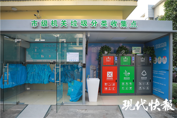 南京市機(jī)關(guān)事務(wù)管理局垃圾分類志愿者丁紅艷介紹,這樣的收集點全大院內(nèi)一共5處,方便大家集中投放垃圾。