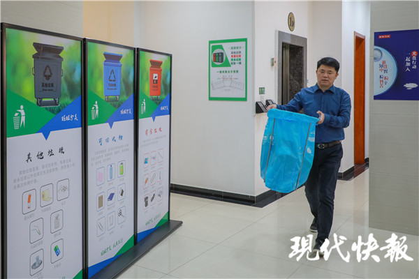 南京市委市政府大院內(nèi)有近30家市級黨政機(jī)關(guān)單位,34號樓是南京市機(jī)關(guān)事務(wù)管理局的辦公樓。12日,現(xiàn)代快報記者走進(jìn)這里,發(fā)現(xiàn)每間辦公室已經(jīng)撤掉垃圾桶,每個處室只保留了一只可回收物收納袋。