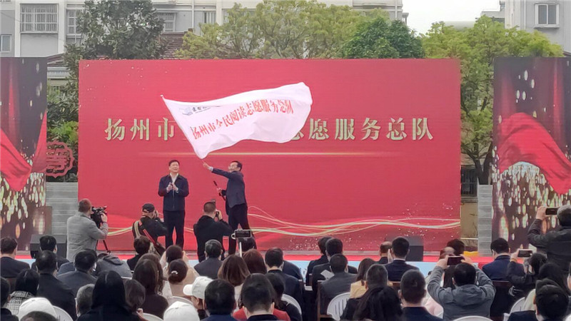 △為“揚州市全民閱讀志愿服務(wù)總隊”授旗