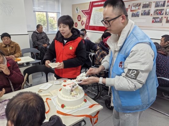活動現(xiàn)場布置得簡潔而溫馨,長桌上整齊擺放著香甜的大蛋糕、飽滿的花生瓜子,還有色澤鮮亮的橘子等水果,空氣中彌漫著食物的香氣與歡樂的氛圍。茶話會伊始,志愿者們共同切開寓意團圓的大蛋糕,將甜蜜分享給每一位參與者,軟糯的口感與真摯的祝福在歡聲笑語中傳遞。大家圍坐在一起,一邊品嘗美食,一邊暢聊生活趣事、康復心得,一句句家常問候、一個個會心微笑,迅速拉近了彼此的距離。