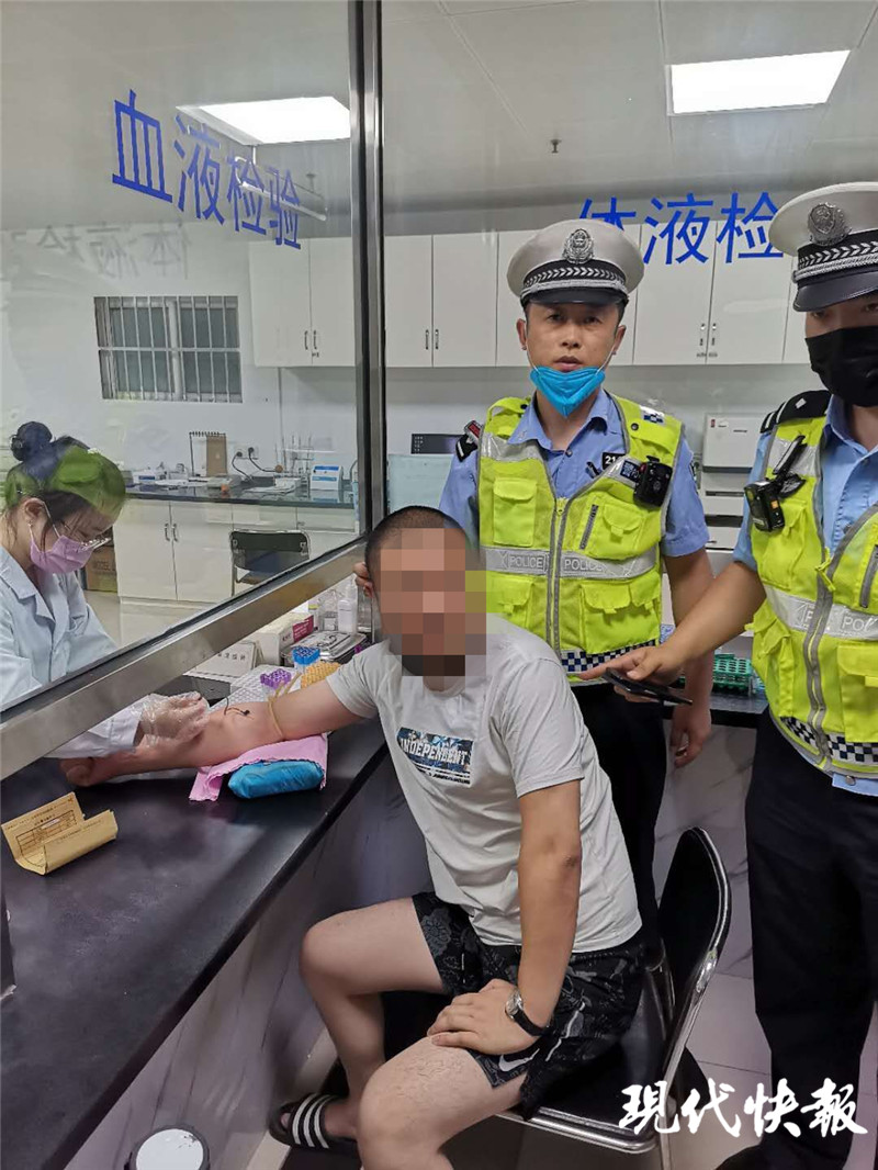 △男子被交警帶往醫(yī)院抽血檢測