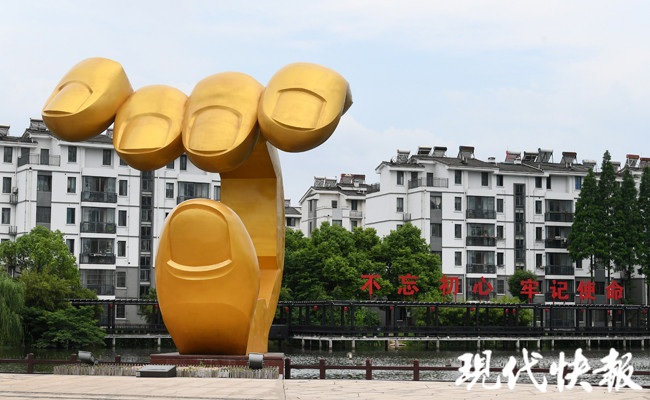 江蘇人民的小康秘訣是什么?張家港永聯(lián)村的村民告訴現(xiàn)代快報記者,答案就在村子廣場上的“金手指”雕塑里。
