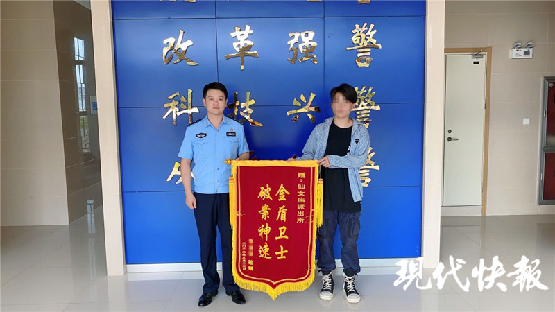△破案后,朱先生向民警贈(zèng)送錦旗表示感謝