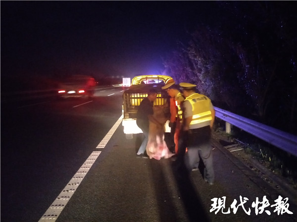 200多斤“二師兄”高速上跳車 交警上路捉豬